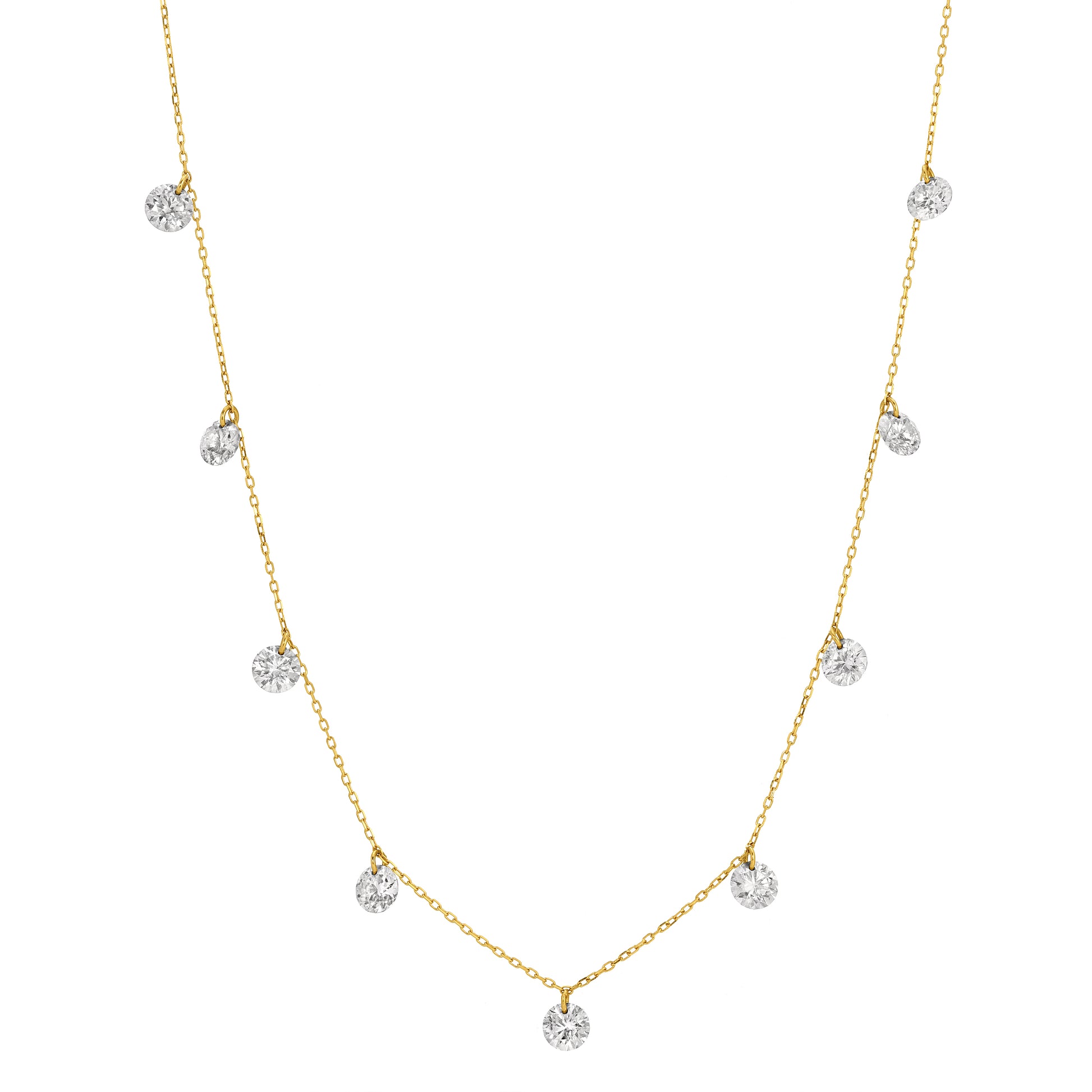 This signature piece levels up the iconic Floating 7 Stone Necklace. Featuring nine luminous stones set in a delicate floating design, catching the light with every movement for maximum sparkle. Effortlessly elegant, it layers beautifully with other pieces yet is striking enough to wear on its own—from morning drop-off to date night. A true everyday essential that brings subtle sophistication to any look.