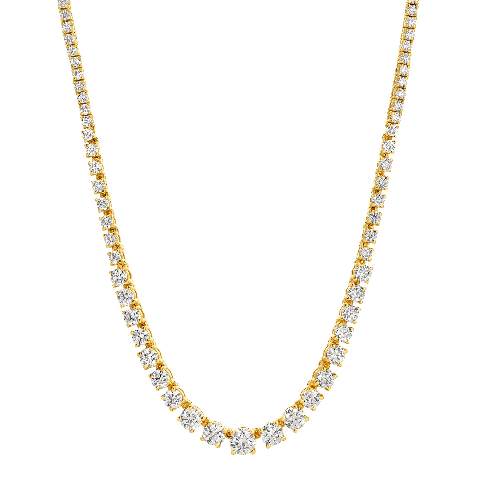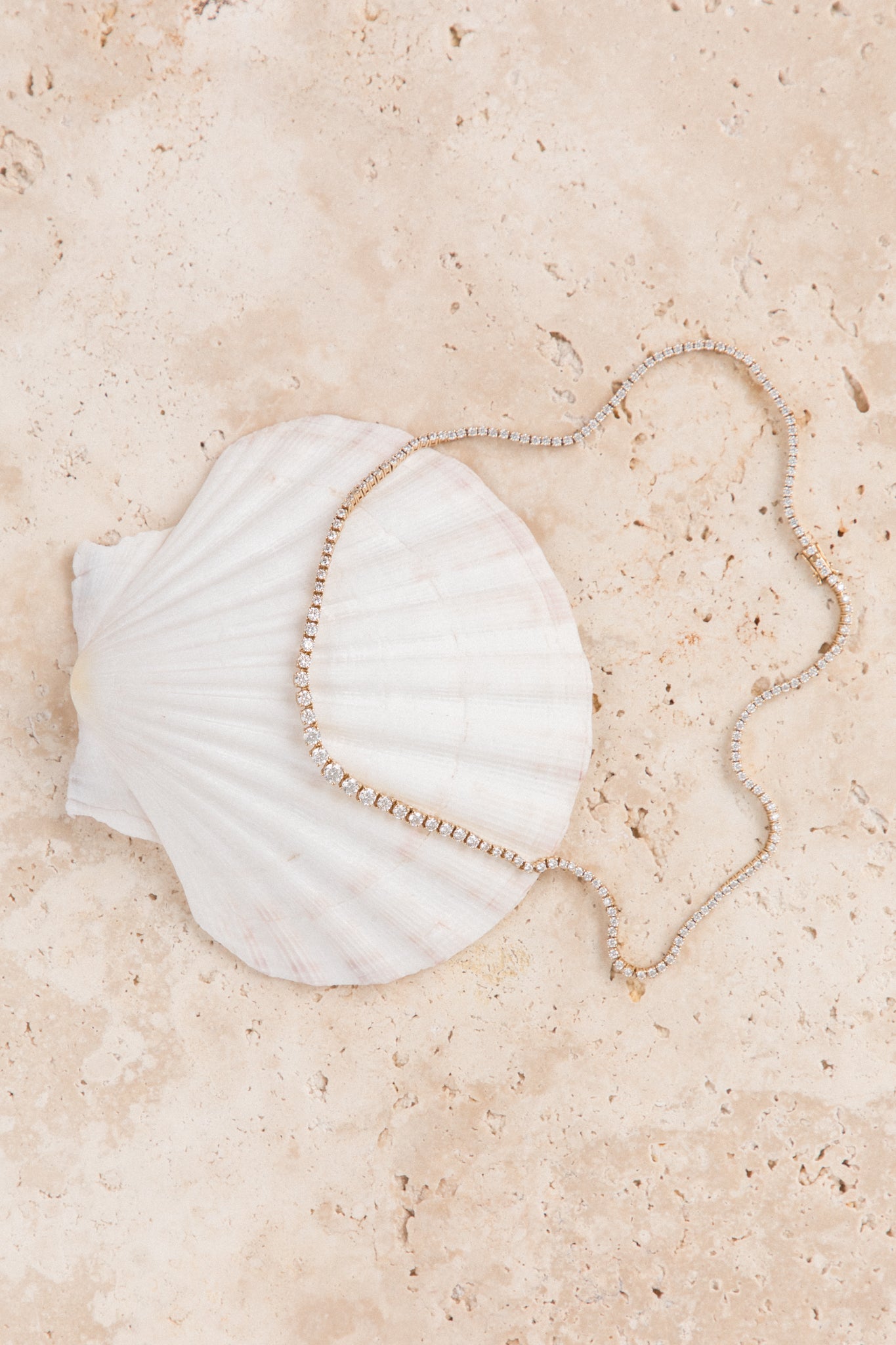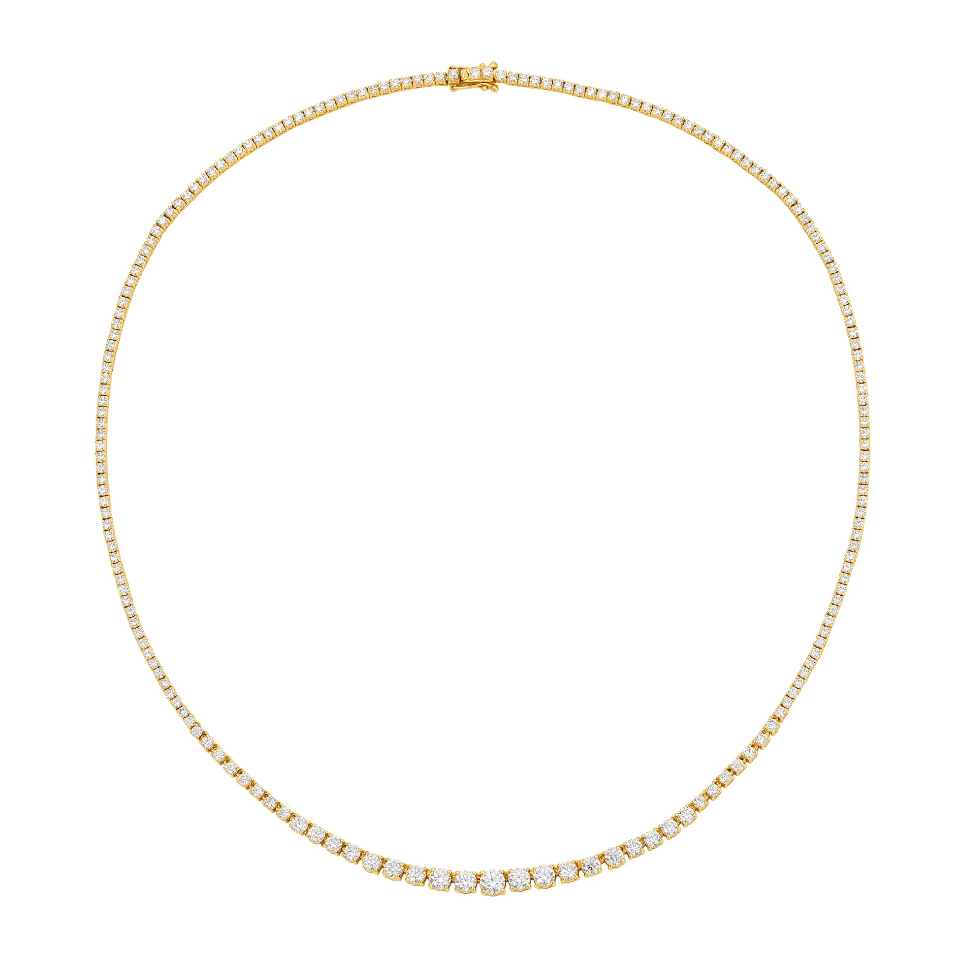 Timeless and refined, the Riviera Tennis Necklace features a graceful graduated design that exudes pure elegance. Perfectly sized for everyday wear yet striking enough for special occasions, this piece is a must-have for any jewelry lover. It pairs beautifully with the Floating 7-Stone Necklace for a layered look with added brilliance.